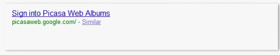 由于robots.txt文件配置错误而消失了的页面摘要;通过 Google.com 搜索 [ google picasa web ] 的结果,2009年9月。