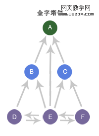 有了这个图我们就好理解一些,如果站点是A而页面则是b,c,d,e,甚至更多,处在金字塔顶端的站点A并没有一个导出连接,而页面b,c,d,e分别互联同时互联,并都指向A这样,如果按投票来说明权重的话,def,分别投了页面B,C票那么BC页面权重自然提高了,而BC又投了A一票,是带权重投的 这里是关键如果bc没有,def投票的话就是不带权重投票,当然这样说也不太准确,因为任何页面都有权重,你可以连接权重大一些好点。那么这样我们就知道即使def没有连接A而他的权重也是传递给了处在金字塔顶的A。