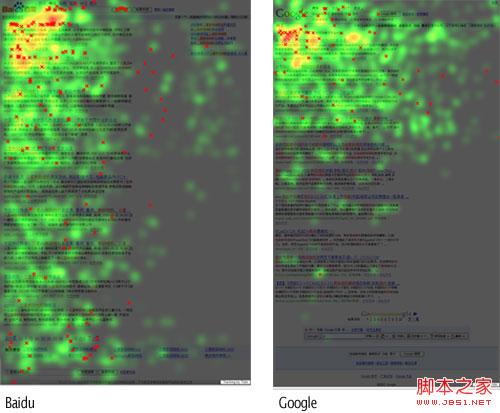 一个国外研究机构在研究和对比百度与谷歌用户首页扫视热力图后发现,百度用户和谷歌用户的行为还是会存在明显差别的。