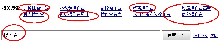 但是往往很多的客户不够了解,盲目的追求着流量大,竞争又大的关键词,举个例子:之前我手上有个客户是做监控器操作台的,但是他跟我们公司说他想做的目标关键词为操作台,当我去百度分析了下操作台关键词,发现操作台非常的广泛,有手术操作台、厨房操作台等不相关的关键词,当时我就跟那客户说,如果你做操作台这个关键词,那么你网站的转化率也许相当的低,这样更不利于网站的优化,导致网站的跳出率增加,严重导致网站的降权!(如下图)