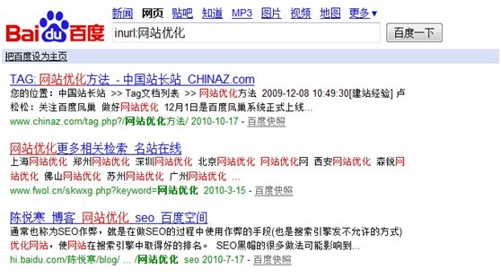 关键词“网站优化”在搜索结果中有链接,这是大家经常在做外部链接时候常用的锚文本,检查是否有效果的最有效方式,下图为搜索结果的第一条中含有锚文本的区域。便于大家更容易去理解这条命令,可惜的是inanchor:只适合在google中使用。