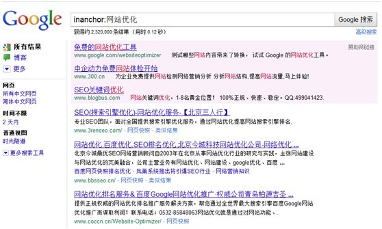 三、inanchor:指令——链接锚文字中包含关键词(google支持)