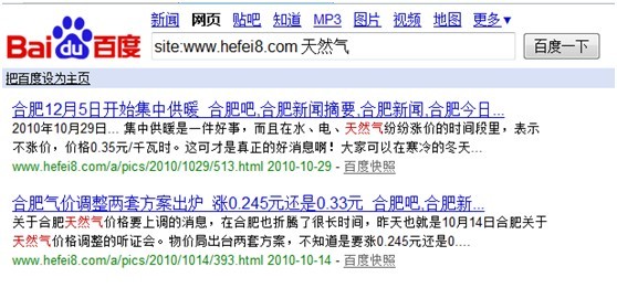 上图仅表示在www.hefei8.com中包含天然气这个关键词的信息,这样可以更加精准的查看到相关信息,常用于精准搜索。