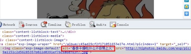 从上面的源码看,百度经验对经验里的图片采取了全部一样的ALT备注内容。“春季干燥吃什么容易上火”备注了全部图片。这也是在百度站长工具里对我们网站提示的:相关图片缺少文字说明。