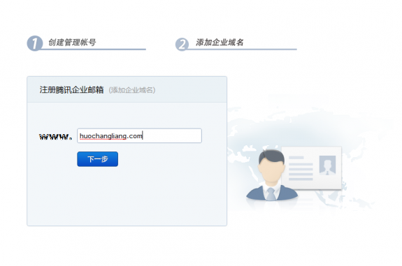 开通企业域名,选择免费版本即可,操作很简单,只要按照提示输入账号和密码即可,之后,即可注册成功。