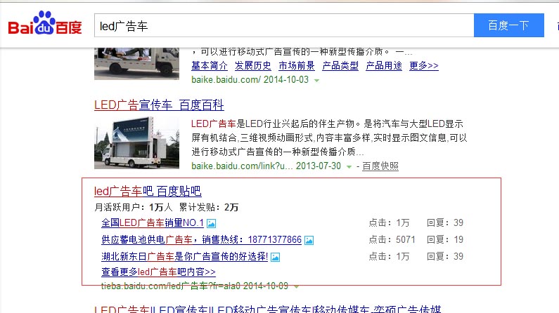 2.搜索车型led广告车,结果页出现“百度贴吧”,那应该如何满足呢?