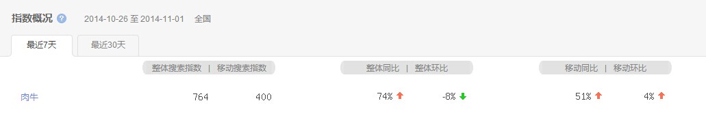 肉牛这一关键词的指数为764,大约为肉羊这一关键词的2倍左右。