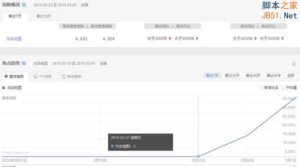 下面我们先看《穹顶之下》给《污染地图》带来的品牌效应,通过百度搜索指数,污染地图的搜索指数一夜之间从0到飙升到了28号的1万,然后从28号的1万,直接飙升到3月1日的3万多,笔者是28号晚上凌晨看的视频,28号凌晨,正好处于第二天不上班的状态,很多人刚上了几天班周末估计比较放松,当晚这个视频就在朋友圈传播的非常火爆。同时,通过百度的索引发现,这个污染地图的索引数也达到了450万。