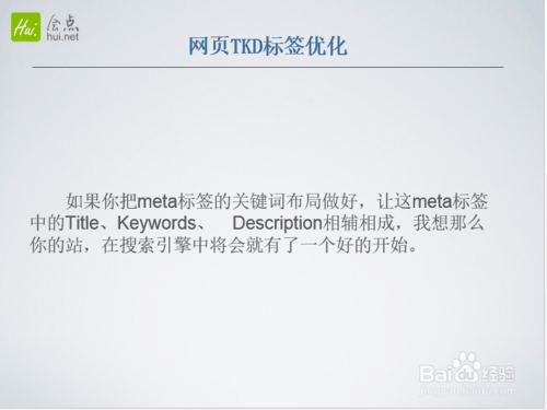 1、Title:title标签是一个网站的主题,是SEO优化网站中最重要部分。title的字数通常为60个字节(当然不同的搜索引擎显示标题长度也是不同的),也就是30个汉字,所以我们充分的利用好这30个字,要针对性的做好网站标题的设置,在设置title过程。