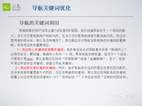 根据前面的用户浏览注意力的E型和F型图,我们知道导航对于一个网站的意义。决不仅仅是帮助用户找到内页,也决不仅仅是帮助搜索引擎找到内页。而应该是两者的结合体,那么在这种情况下,我们就应该对导航采取特殊的关键词部署策略,来体现这样的重要地位。
