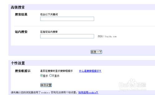 6、百度贴吧,高级搜索,可以只在此贴吧中搜索,只搜索该用户的发言,限定搜索结果的排序方式,包含以下全部的关键词,显示的条数。由于百度搜索算法改变,以前的intitle等一些命令不能使用。