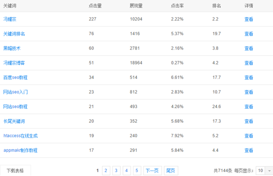 大家都知道,百度有一个这样的算法,比如你网站某关键词排名在第10位,当搜索这个关键词点击你网站的人比第9位点击的人数多的时候,那么说明第10位的网站会比第9位的网站要好,不然用户怎么都点击第10位的,不点击第9位的?同时百度在站长平台中还有一个数据是显示排名和点击率的,如下图所示: