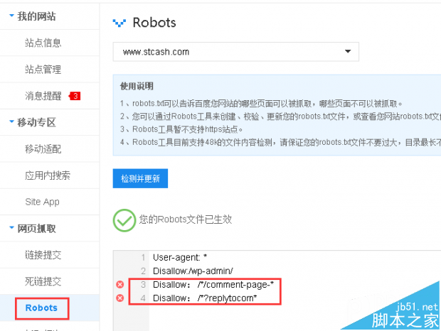 4、Robots工具目前支持48k的文件内容检测,请保证您的robots.txt文件不要过大,目录最长不超过250个字符。