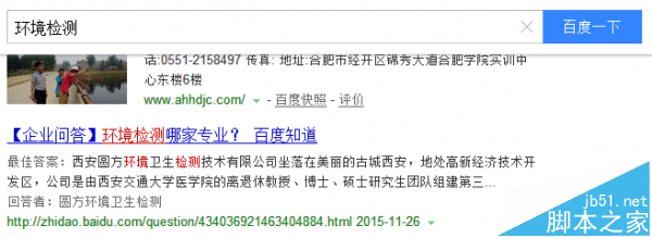 如下方的案例,搜索环境检测哪家好?这样的词对于网站来说是很难做上来的,但是我们借助百度知道,就能够登上首页,进而在百度知道中宣传我们的网站,获得精准流量。