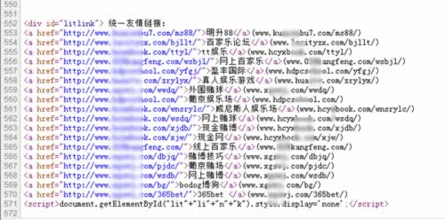 情况一:如果同ip网站只有自己站点被挂了黑链,那么99%是自己站点程序出现问题了;