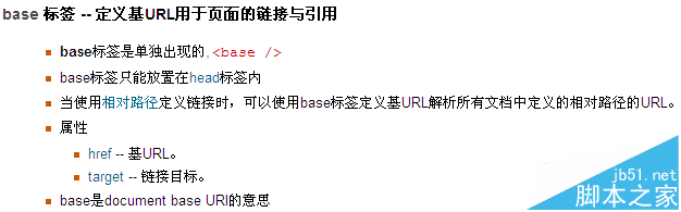 教程上对于HTML base标签做了如下描绘,其href特点的界说和用法为:href特点规则页面中所有相对连接的基准URL。