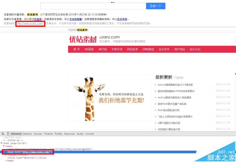 咱们随意点开一个baidu快照,然后右击检查源文件,能够很清楚地看到标签与快照的对应关系,这也就很天然地表明了baidu对网站首选域的选择。所以咱们只要在代码中设置就能引导baidu蜘蛛抓取准确的域名。