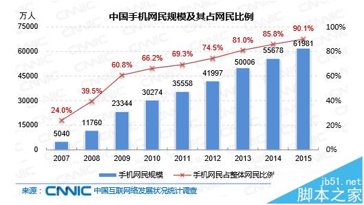 上图是来自CNNIC的数据,我国手机网民规模及其占网民份额,截至 2015 年12 月,我国网民手机上网运用率为 90.1%,较 2014 年末进步 4.3 个百分点;而2014年第三季度baidu的移动查找量现已逾越了PC,且只升不降趋势。能够幻想2015年的移动查找量会逾越2014年的。而2016年又会 逾越2015年,这现已是开展的必定,移动SEO有多么的不可或缺也就能预见了。
