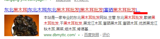 黑木耳批发,但是当用户去搜索这个关键词的时候发现我们这个标题上除了黑木耳的批发信息外,还有黑木耳的年份、价格,甚至还有实拍图片,那么用户是不是对我们的网站更感兴趣呢,有些东西,用户搜索的时候可能不会想到,但是当你展现在他面前时,他会不由自主的去点击,这一招叫做心理暗示法,真正的干货哦。当然,在用户点开我们的网站后标题上出现的这些词都必须有与之匹配的内容去供用户浏览,这样才能真正的留住用户,降低网站的跳出率。