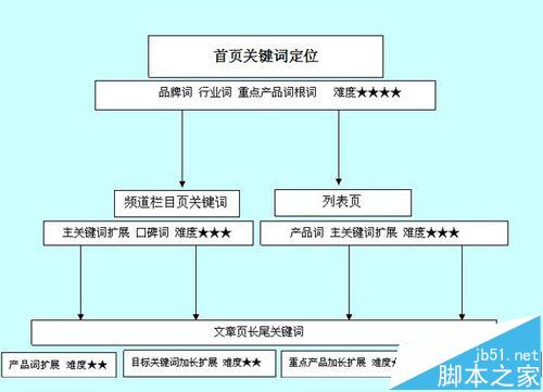 2、在明确网站关键词之后,进行网站建设的时候就需要对网站关键词进行布局。一般在首页的title和foot处可以放一些品牌词、产品词和热门主推词。在栏目页和产品内容页可以多放置长尾词和搜索词。可以参考下图进行关键词布局。