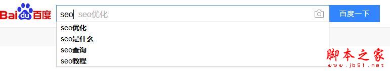 如果一个新手站长想做SEO,那他肯定向了解SEO的方法。那他应该就会先搜索“SEO”这个关键词,下图是下拉框的展示: