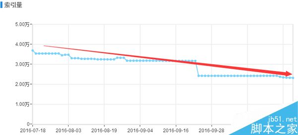 如上图小编是今年三月份开始接手的这个网站项目,当时并木有通过逆向思维去解决网站存在的收录问题,只是经验性的简单分析了一下网站的日志,在站长后台增加了sitemap推送和在服务器上部署了主动推送功能,短时间内的确效果明显,该频道的页面收录呈现良好的上升趋势,可是通过图表可以看出,收录量在达到6月份的时候一直到7月份中旬没有进行任何明显的变化,从7月中旬之后小编当时就有一种危机感,职业上的直觉告诉我,接下来一段时间该频道的收录会呈现大幅下降的趋势,结果果不其然,如下图: