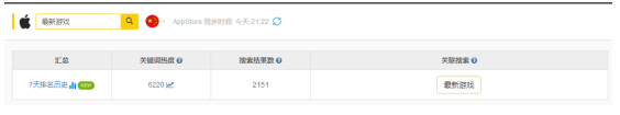 为什么要注重‘行为词’?先看一个简单的例子。如关键词‘最新游戏’的搜索指数是6220,这个搜索指数对应的下载量是多少呢?蝉大师ASO分析人员估计这个关键词的下载量在日均1000左右。也就是说,如果我们把这个‘最新游戏’这个关键词做到前三的话,理论上是可以为我们的APP每天带来1000左右的免费用户的。
