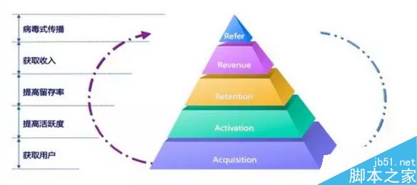 AARRR是Acquisition、Activation、Retention、Revenue、Refer,这个五个单词的所写,分别对应这一款移动应用生命周期中的5个重要环节。