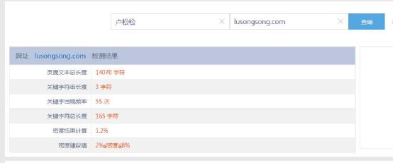 我们可以通过上图可以看到卢松松博客的卢松松该词的关键词密度分别为0.83%和1.2%,虽然两者平台计算的关键词密度不一,最大的不同点其实是不同平台对于关键词的字符处理方式不一样。不管是爱站还是站长工具不会直接进行页面关键词密度计算,而是先通过网页去除所有HTML元素代码以后所得到的网页总字符进行计算。