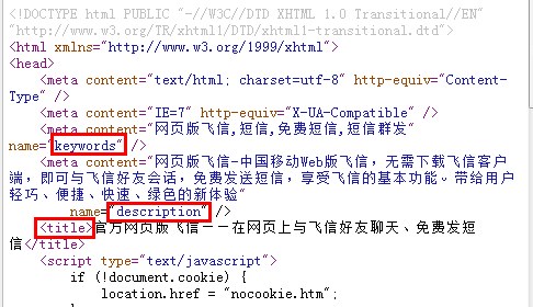例如:官方网页版飞信——在网页上与飞信好友聊天、免费发短信 (现在线上的title就可以,不需要大改,可以考虑把长破折号改为短横线“-”,雅观)