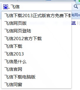 可以通过作弊的方法,将你期望的关键词刷到热门关键词的联想菜单,例如,用户输入“飞信”,联想菜单第二条就是“飞信网页版”,以此提升主关键词的曝光量。