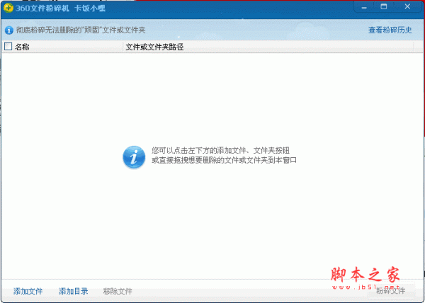 360文件粉碎机需要在360安全卫士中打开,这款文件粉碎机可以粉碎各种顽固型文件。将需要粉碎的文件拖拽进文件粉碎机,即可完全粉碎!被粉碎的文件不可恢复,需要慎重操作。