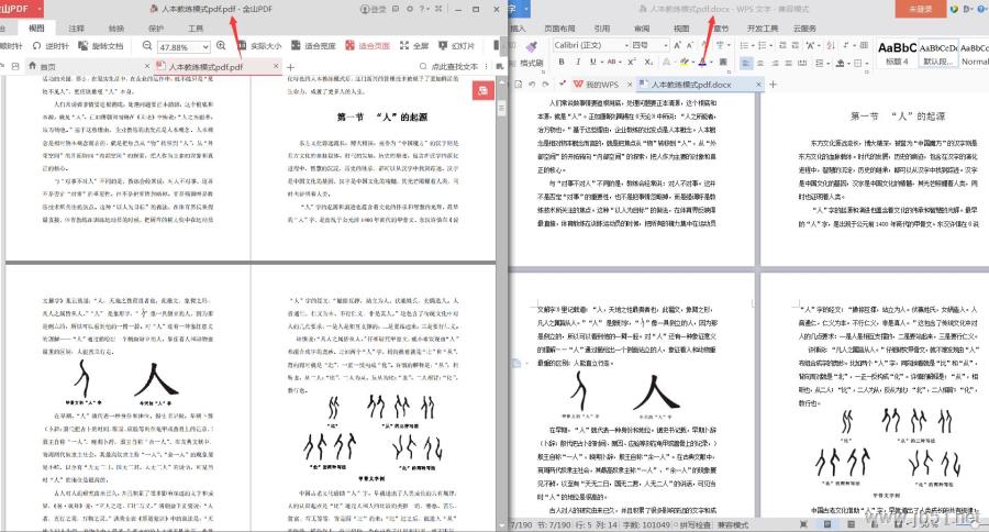 3.转换文件与原文件(左)对比。转换效果百分百无误,字体颜色、布局排版、异形字体均正常显示。