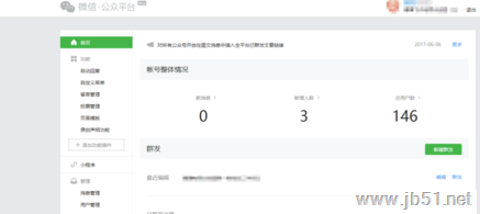 1、在微信公众平台,输入自己的微信公众号登录,进入信息统计的页面,页面左侧是一些可操作的菜单