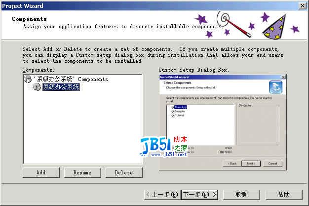 下面是指定组件与文件组的关系,其实就是选择哪些文件是在某个组件中的信息