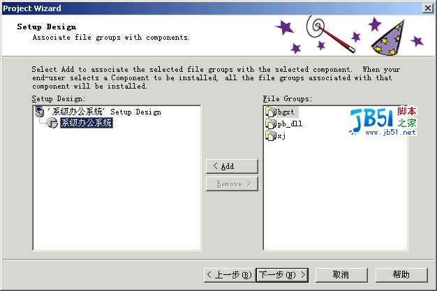 选择文件组。上图选择的组件是为了管理方便用的,并不对应真实的安装文件;这里的文件组才是真实的给你的文件分组