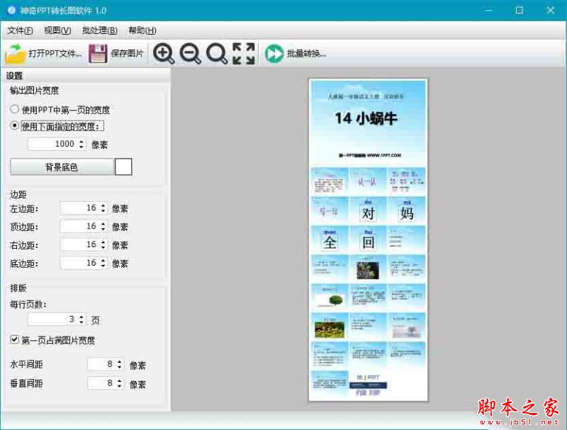 3. 设置好输出图片的宽度、边距及排版设置,然后点击”保存图片“按钮,即可以将PPT文件为长图图片,下图即为保存后的图片的效果图: