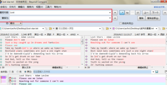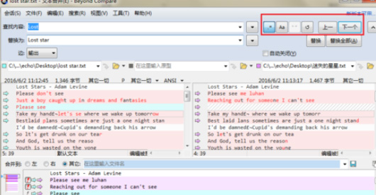 最后Beyond Compare输入查找和替换的内容后,您可以单击“替换”或者“全部替换”按钮,在Beyond Compare文本合并输出窗格中完成查找和替换的操作。如果您还勾选“自动关闭“复选框,那么在完成此次查找和替换的任务后,该栏目将自动关闭,在文本合并会话中将不再显示。