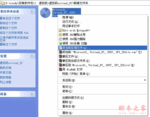 我电脑中有一个虚拟机软件Virtual PC,文件名是Microsoft_ Virtual_PC_ 2007_ SP1_32bits.exe,文件大小为31.7MB。我想把它上传到csdn的资源空间中,但是现在我的权限是最大只能上传20MB的文件,直接传送不了这个文件。在网上搜了一下,发现可以使用WINRAR压缩软件把文件进行分割。那么我可以使用WINRAR软件把这个31.7MB的文件分割成两个小于20MB的文件,再上传上来。下面是操作步骤: