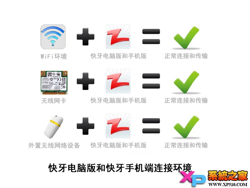 以下两种情况在没有无线网卡硬件时,也可正常使用“快牙电脑版”连接手机端快牙。
