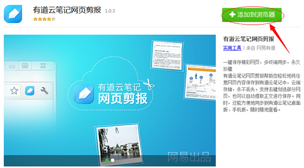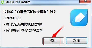 ③在弹出”有道云笔记网页剪报“网页对话框,点击如下图”添加到浏览器“。