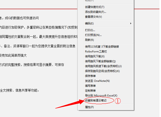 打开网页,鼠标选中想保存的内容,点击右键-收藏到有道云笔记。