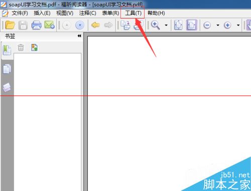 2、打开pdf文件之后,然后在菜单中选择“工具”的选项。