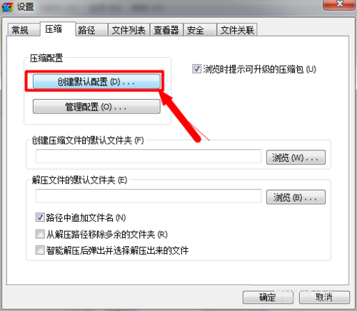 现在,打开了设置窗,找到“创建默认配置”按钮,点击进入其中吧。