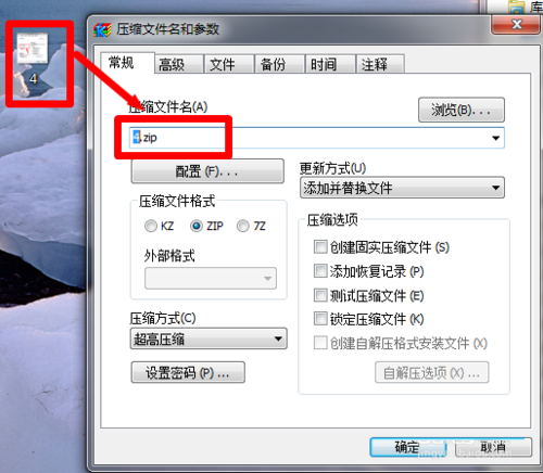 现在,我们将一个文件进行压缩的操作,发现默认的格式就是刚才设置的格式。