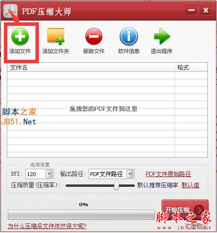 2、安装完成之后,就可以添加需要压缩的PDF文件了。