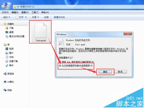 2、双击Epub格式的电子书文件,然后选择“从已安装程序列表中选择程序”。