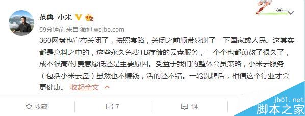 不过他还打消了小米云用户的顾虑,表示:受益于我们的整体会员策略,小米云服务(包括小米云盘)虽然也不赚钱,活的还不错。一轮洗牌后,相信这个行业才会更健康。