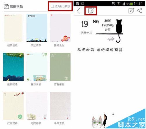 7、印记云笔记每周更新的精美信纸非常受欢迎,有简洁、唯美、插画、水墨多种风格。点击“画笔”按纽,进入信纸库下载信纸即可(WIFI环境下速度更快哦)。如果钟爱某一款也可以设为默认模板。大家可以多多尝试~