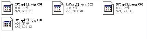 分割后的文件,后缀名为“001”、“002”,以此类推。如下图所示文件,原文件为mpg格式,分割为了4个部分。注意,除了后缀的001、002以外,前面的文件名部分,必须保持一致,如下载过程中造成了文件名的缺损,请手动修改后再进行后续操作。